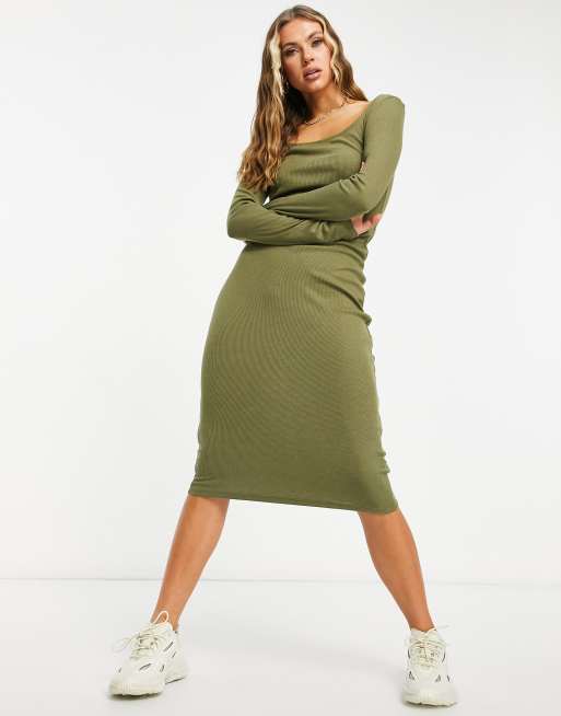 Buy Boohoo Basics Cap Sleeves Jersey Bodycon Midi Dress In Khaki Very well made.