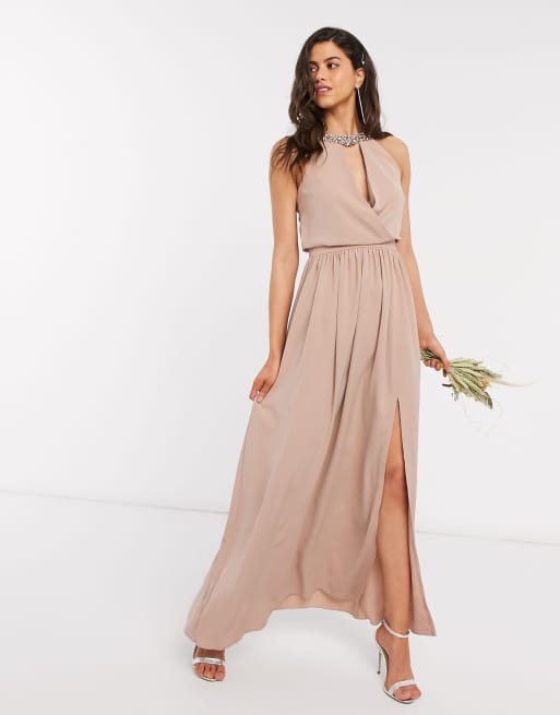 Little Mistress bridesmaid bardot maxi dress in mink ShopStyle Very well made.