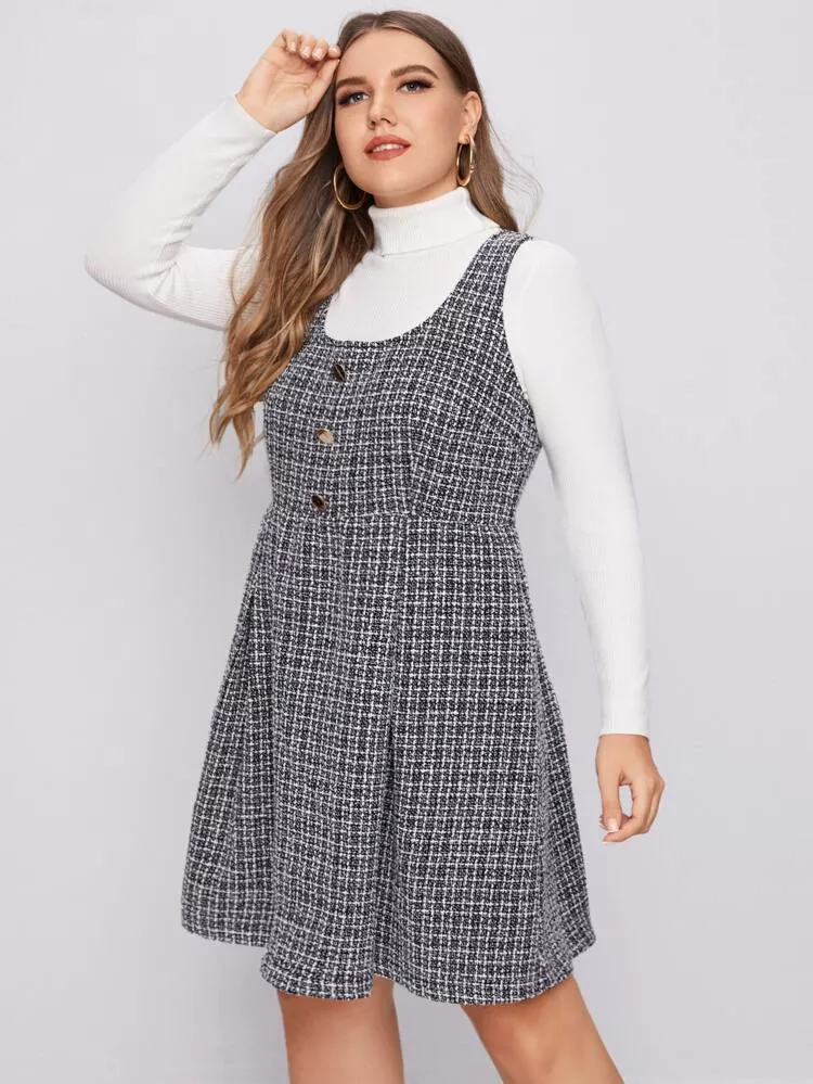SHEIN Plus Button Front Tweed Dress curated on LTK Very well made.