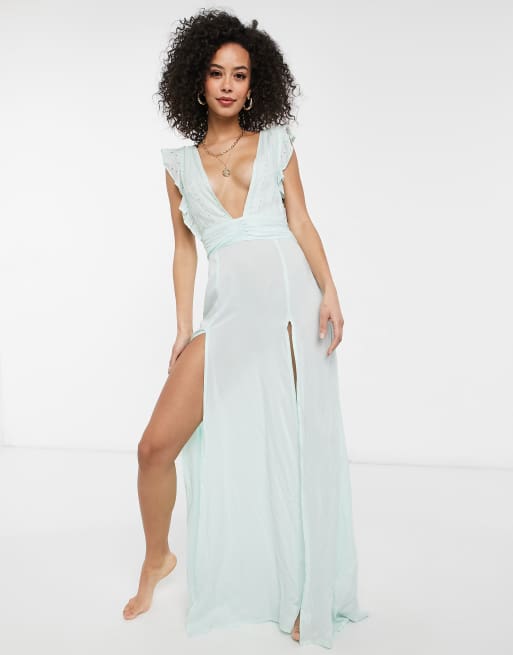 ASOS DESIGN Tall broderie ruffle maxi beach dress in mint green Very well made.
