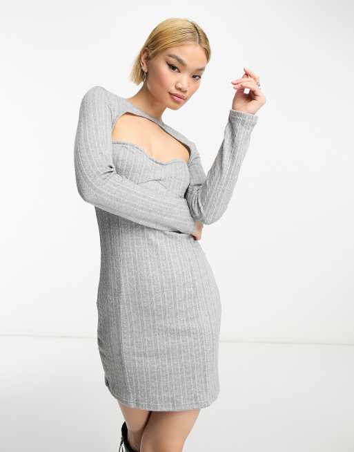 Rebellious Fashion knitted cut out detail mini dress in grey Very well made.