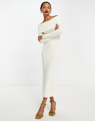 ASOS DESIGN Supersoft bardot midi jumper dress in winter white Very well made.