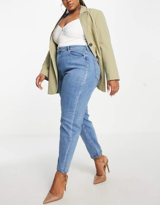 ASOS DESIGN Curve slim mom jeans in mid blue Very well made.