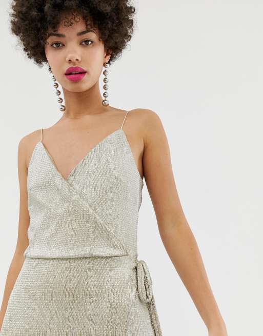 River Island Gold metallic plisse tie waist midi dress Very well made.