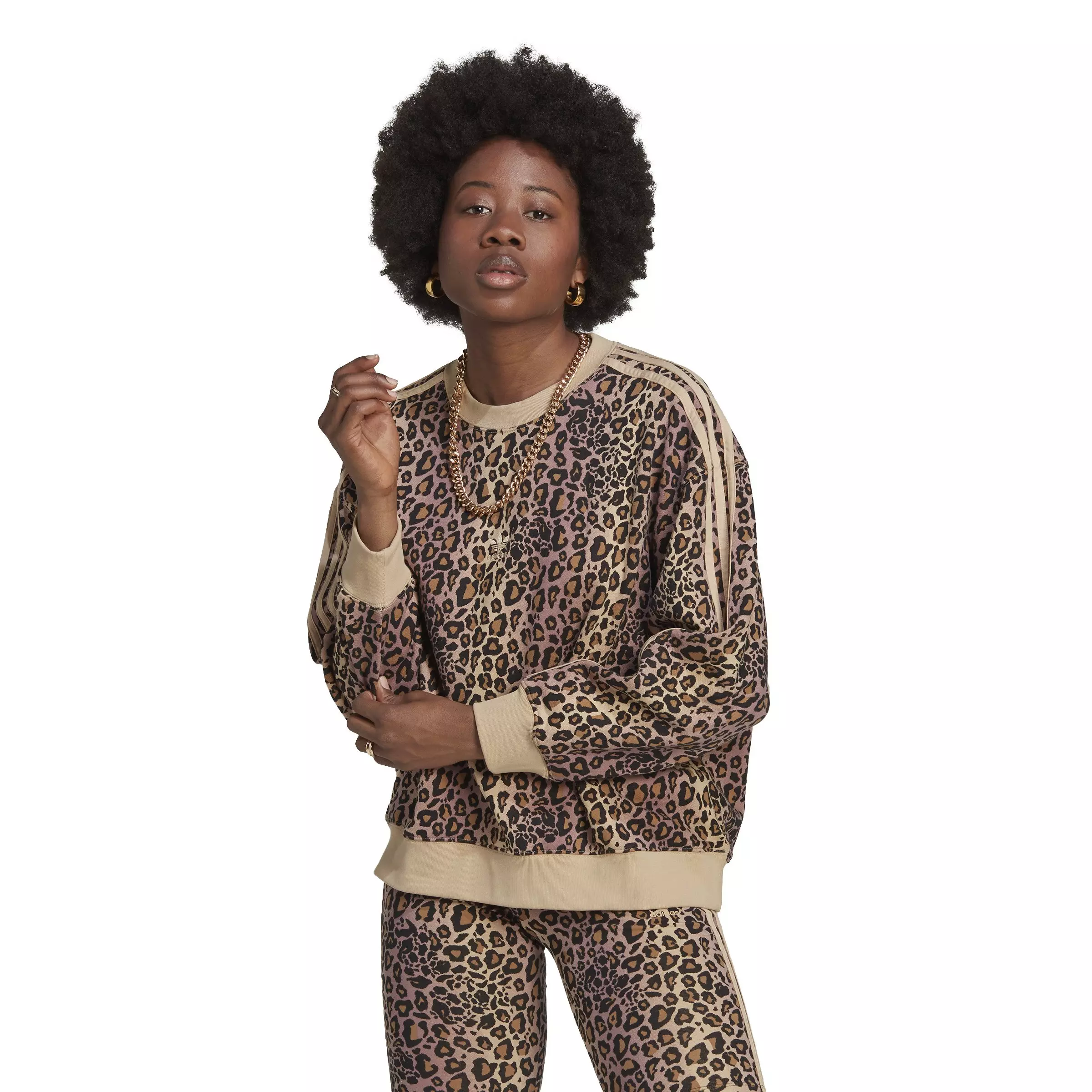 adidas Women s Cheetah All Over Print Crew Sweatshirt Beige Very well made.