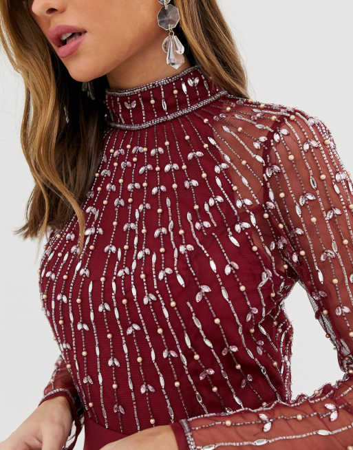 ASOS DESIGN maxi dress with long sleeve embellished bodice Very well made.