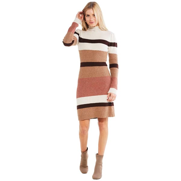 Juniors Pink Rose Multi Stripe Mock Neck A Line Sweater Dress Very well made.