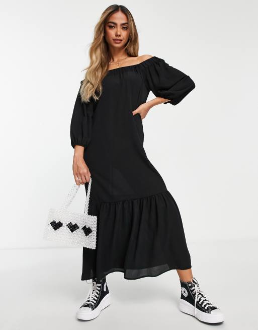 ASOS DESIGN off shoulder trapeze maxi dress with pephem in black Very well made.