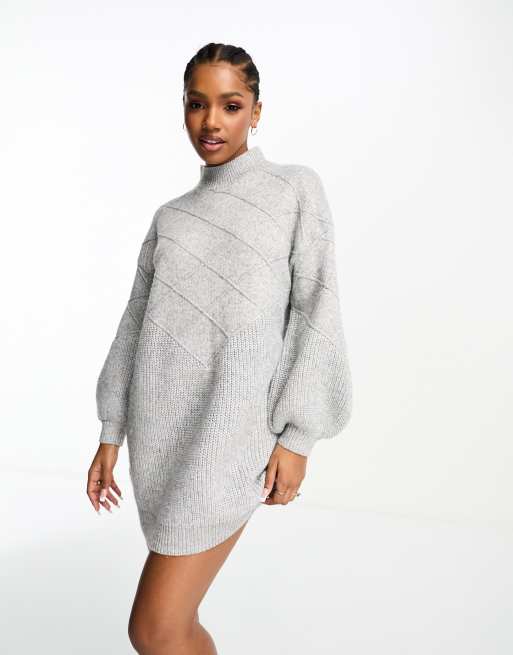 The Frolic pointelle detail balloon sleeve jumper dress in soft grey Very well made.