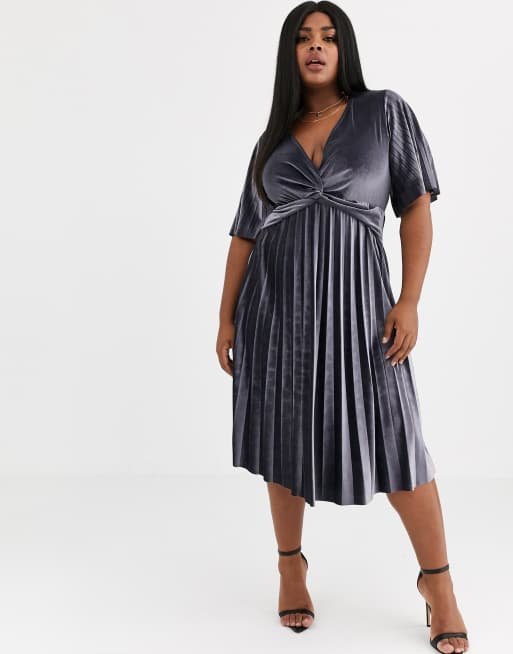 ASOS DESIGN Curve twist detail pleated kimono midi dress in velvet Very well made.