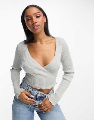 Stradivarius knitted ballerina wrap top in grey Very well made.