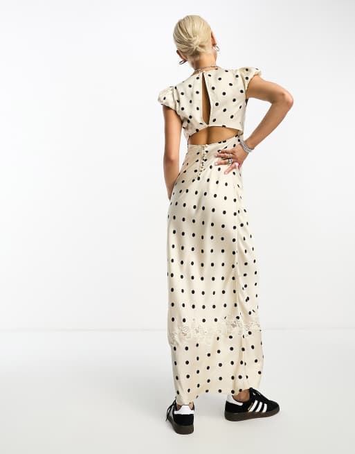 Free People butterfly lace polka dot satin maxi dress in oyster ASOS Very well made.