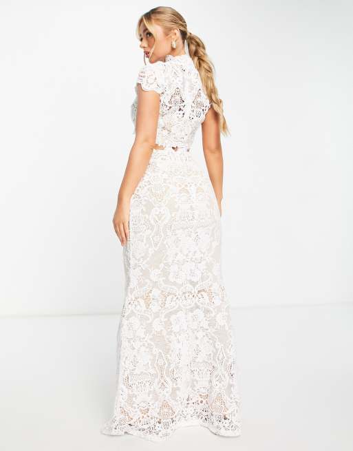 Goddiva two piece lace crop top and fishtail maxi skirt set in white Very well made.