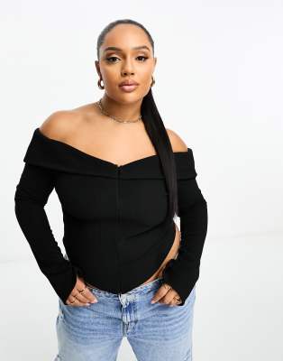ASOS DESIGN Curve off shoulder top with double ended zip in black Very well made.