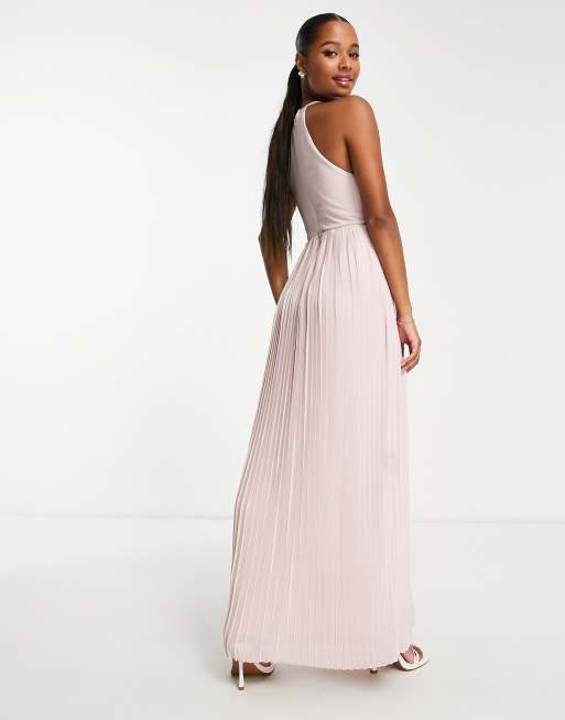 TFNC Petite bridesmaid pleated wrap detail maxi dress in mink Very well made.