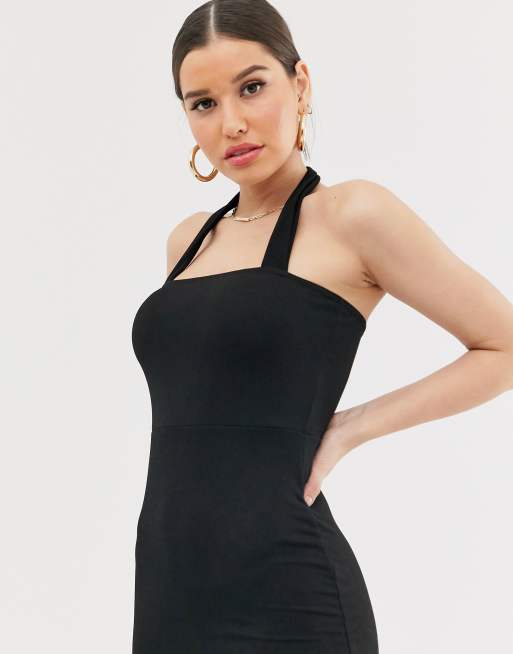 Missguided bodycon midi dress with square halterneck in black Very well made.