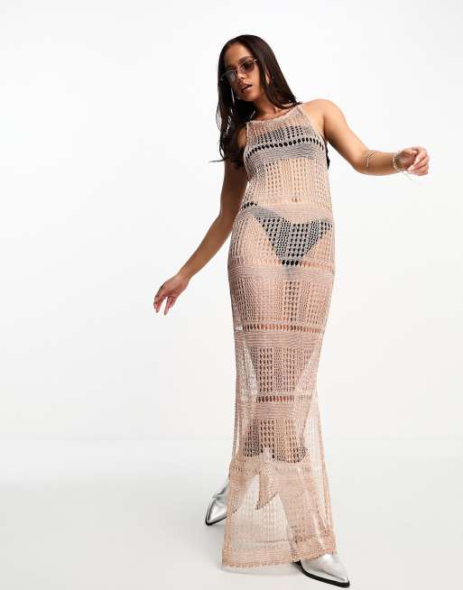 Miss Selfridge festival metallic crochet criss cross back maxi Very well made.