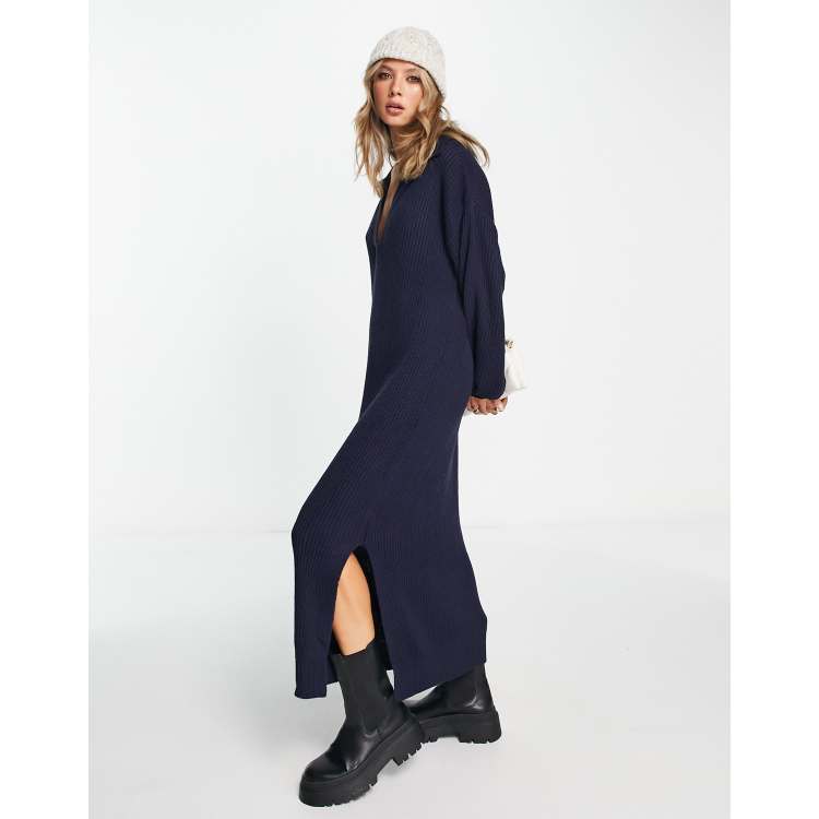 ASOS DESIGN knitted maxi dress with open collar in navy Very well made.