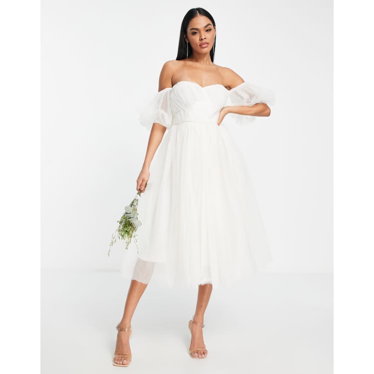 Lace Beads Bridal off shoulder midi puff dress in ivory Very well made.
