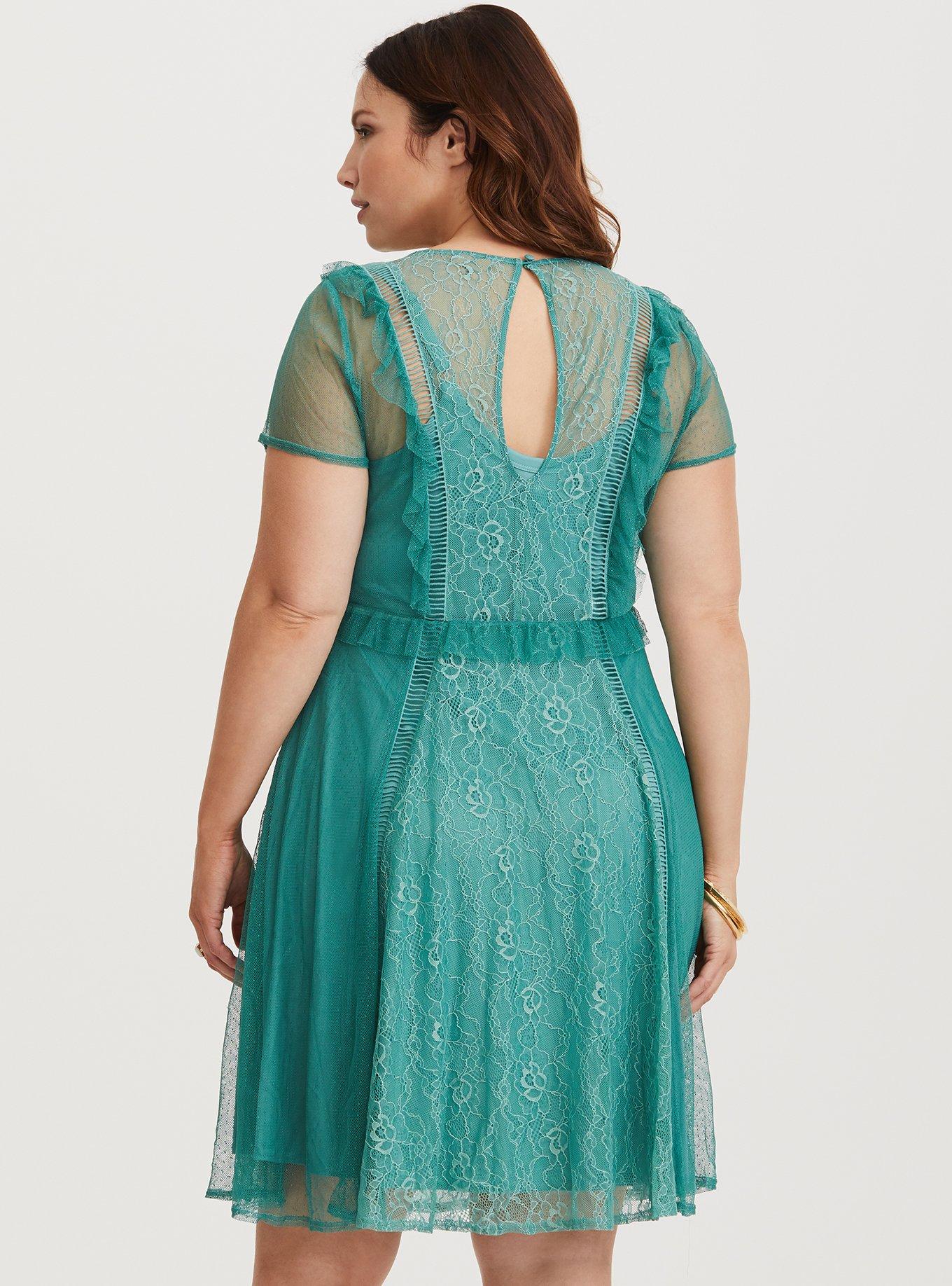 Plus Size Teal Lace Mesh Skater Dress Torrid Very well made.