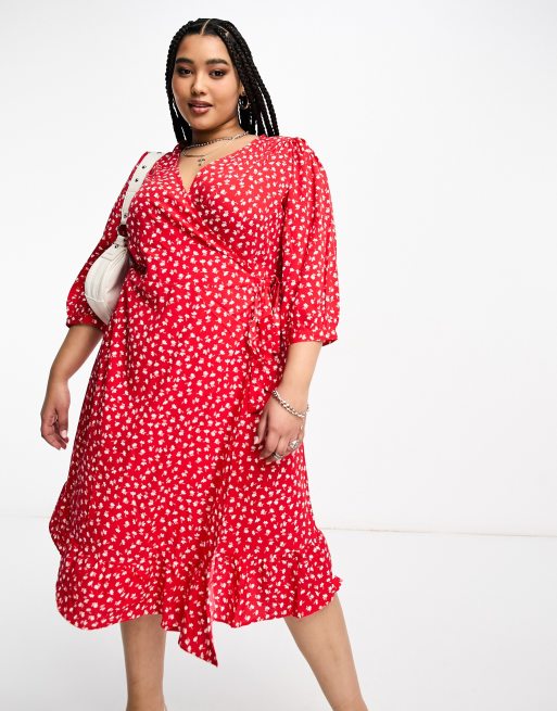 Only Curve puff sleeve wrap midi dress in red floral ASOS Very well made.