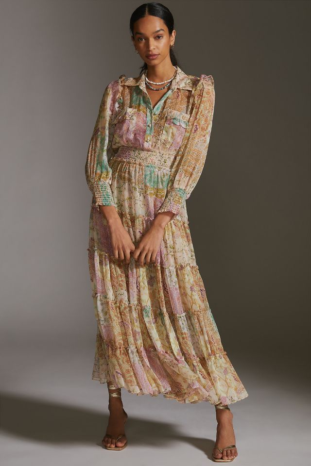 MISA V Neck Buttonfront Maxi Dress Very well made.