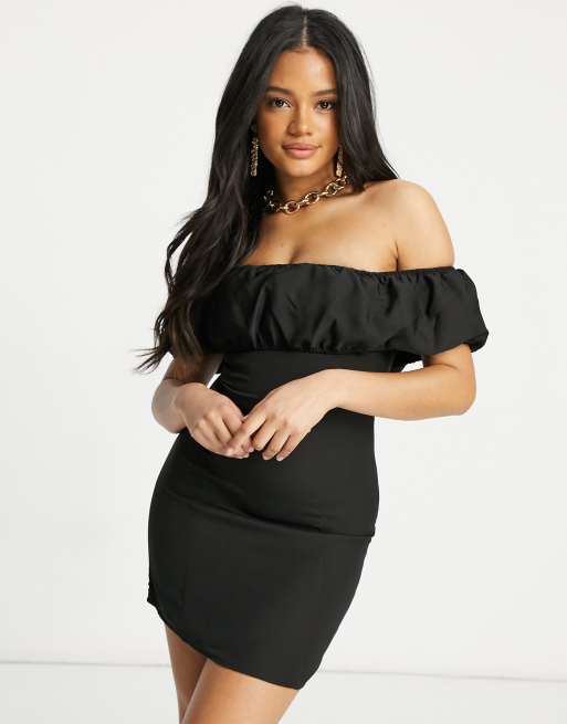 Parisian off the shoulder puff sleeved mini dress in black Very well made.