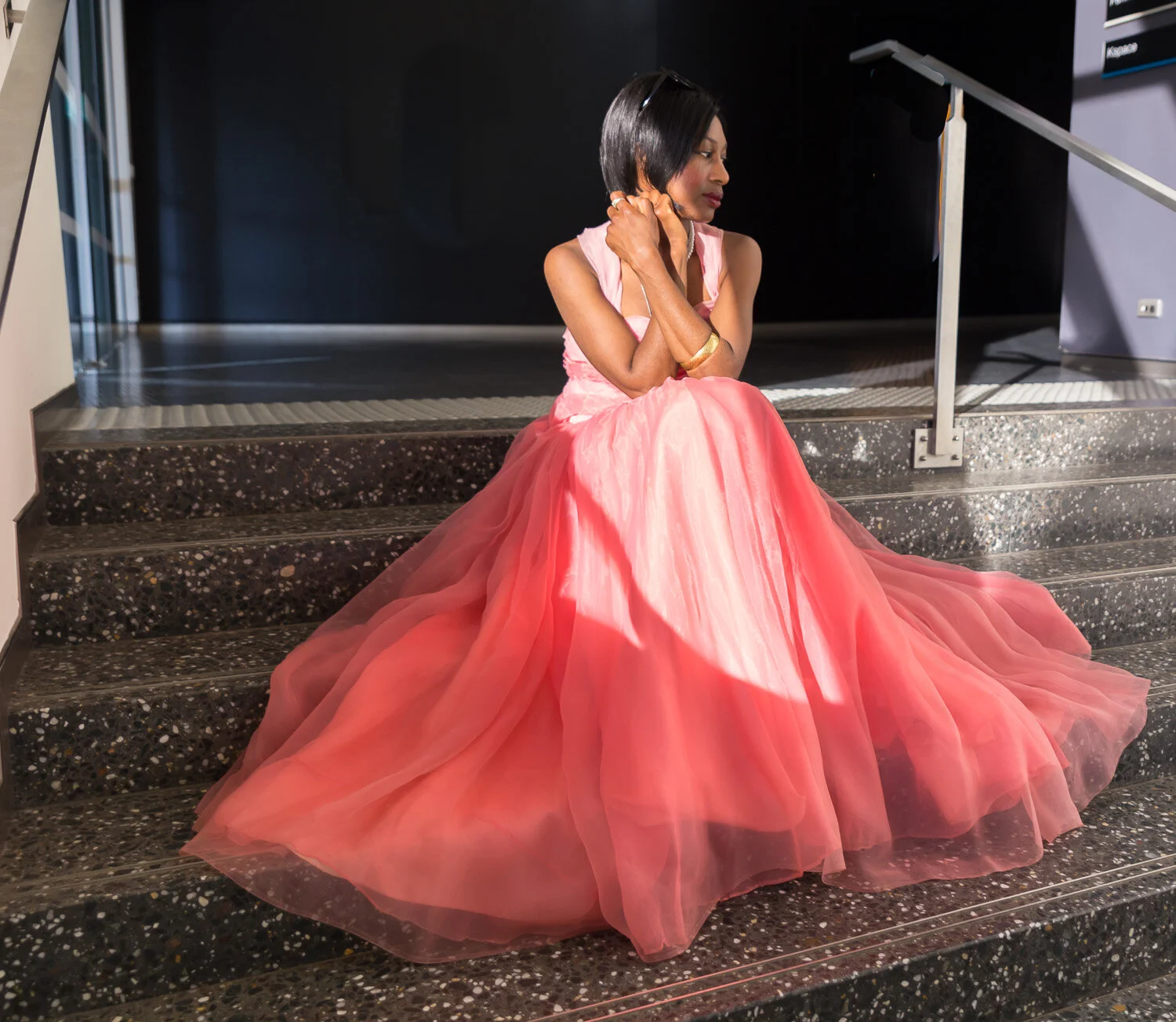 gracefilm Grace Kelly in a Grecian rose pink chiffon evening Very well made.