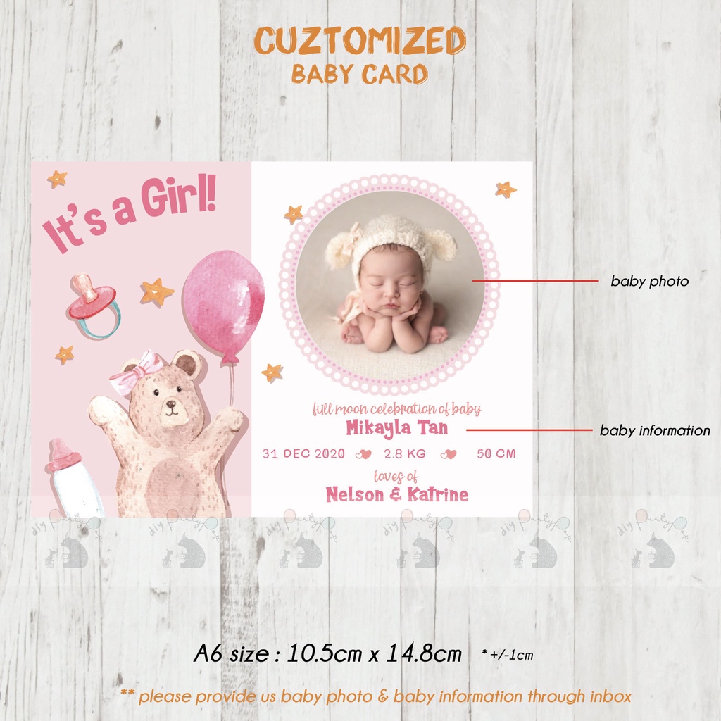 Photo Card Glossy Full month Baby Card Full moon Name Card Very well made.