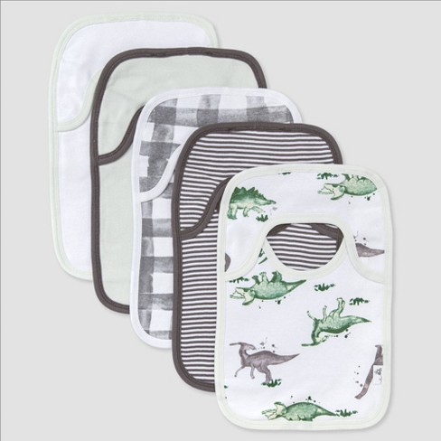 Burt s Bees Baby Set Of 5 Happy Herbivores Bibs Charcoal Gray Very well made.