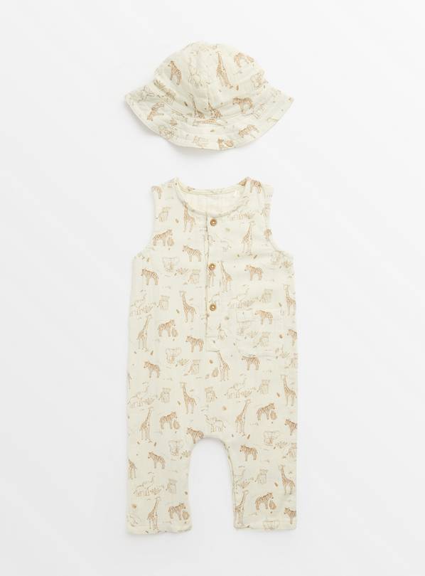 Buy Cream Woven Safari Print Romper Hat Set 18 24 months All Very well made.