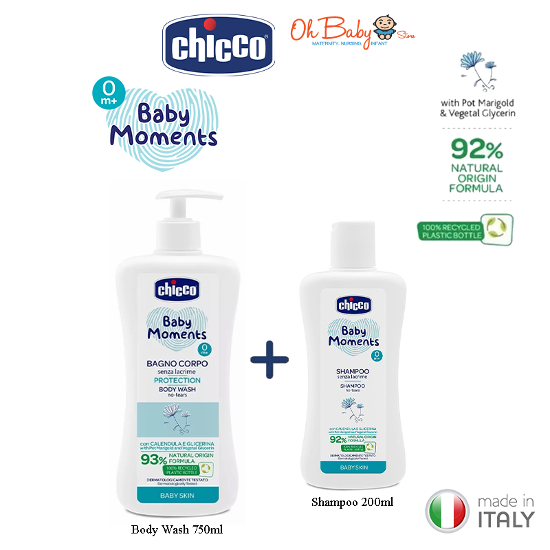 Chicco Baby Moments Gentle Body Wash Shampoo Body Lotion Non Sticky Nourishing Formula 2 pcs Very well made.