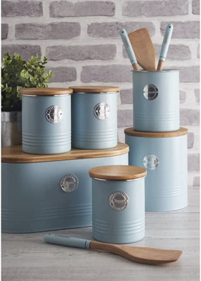 Duck Egg Blue Tea Coffee Sugar Canisters Treats Cookie jar Wooden Bread Bin Glamjar Products Very well made.