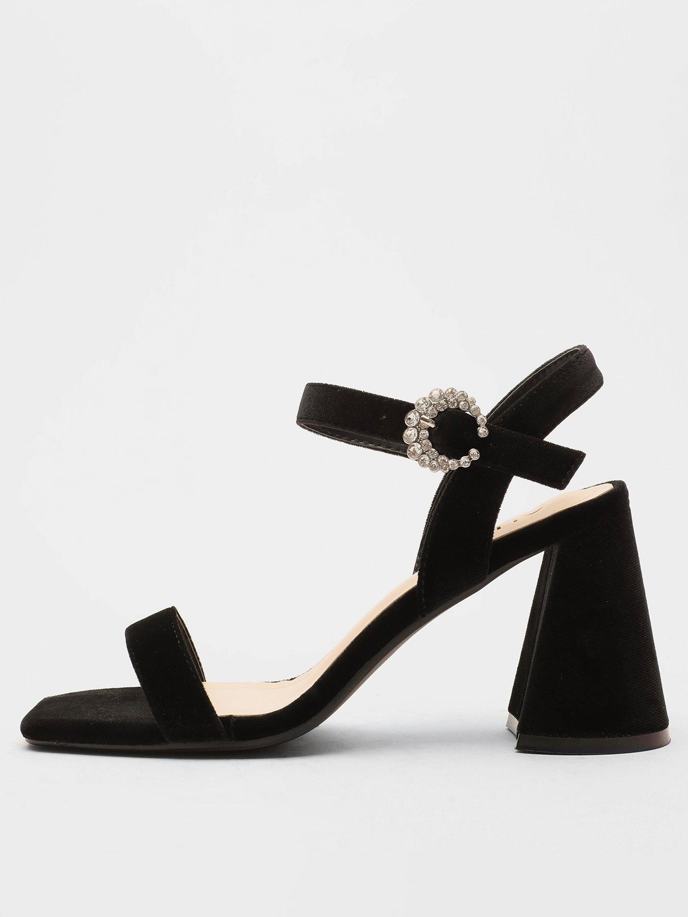 Black Velvet Diamante Buckle Block Heels Very well made.