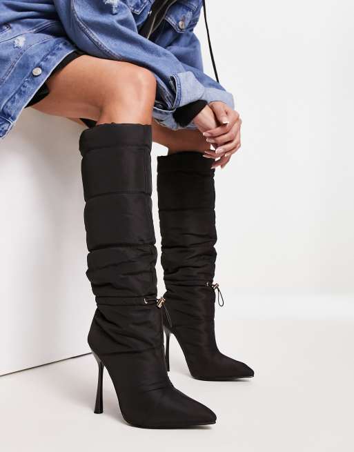 Women s Black Ruched Pointed Toe Stiletto High Heel Knee High Very well made.