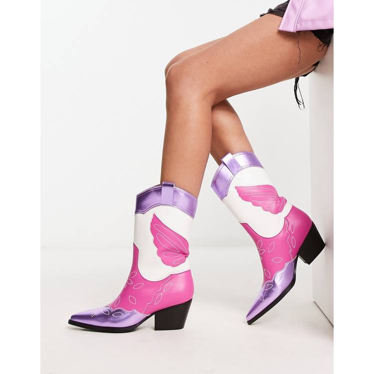 Public Desire Exclusive Howdy western boots in metallic purple Very well made.