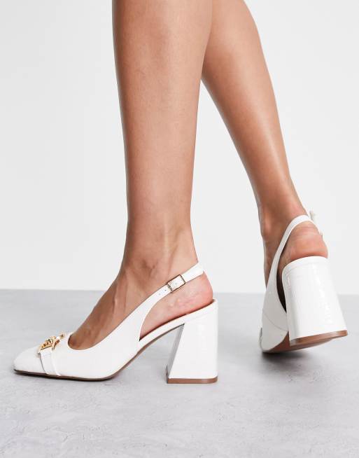 ASOS DESIGN Stable snaffle detail slingback heeled shoes in white Very well made.