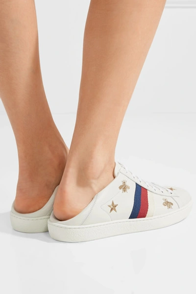 Ace Embroidered Leather Collapsible heel Trainers In Gold Tone white Very well made.