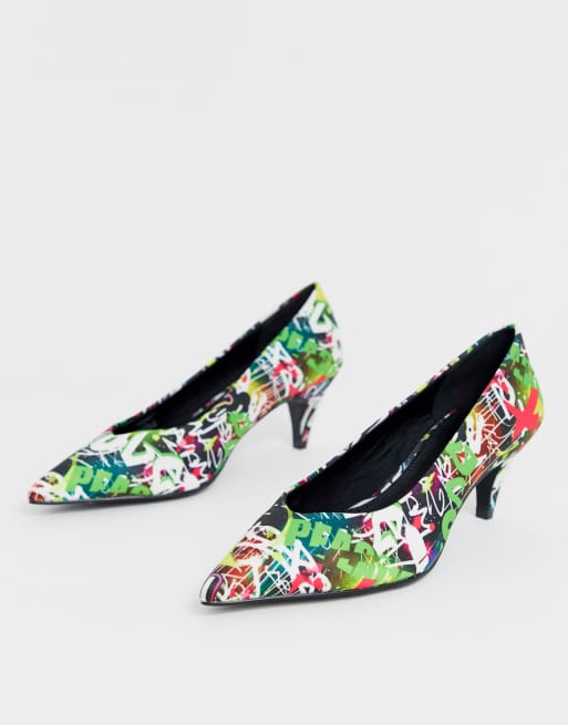 ASOS DESIGN Sensation kitten heel pumps in graffiti print Very well made.