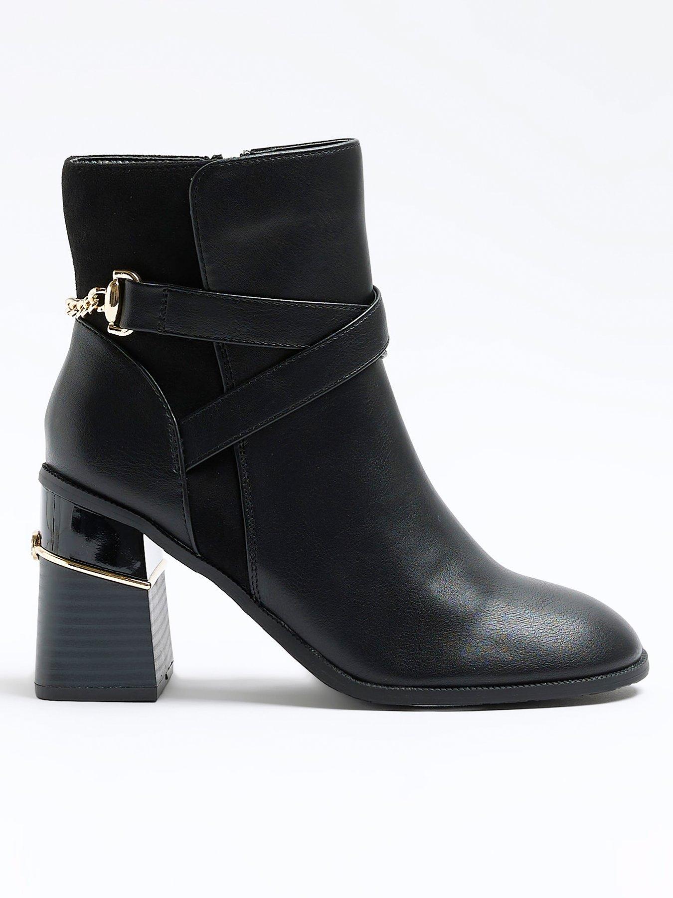 River Island Wide Fit hardware detail heeled ankle boot in black Very well made.