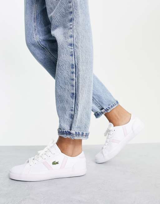 Lacoste Sideline lace up trainers with pink detail in white leather Very well made.