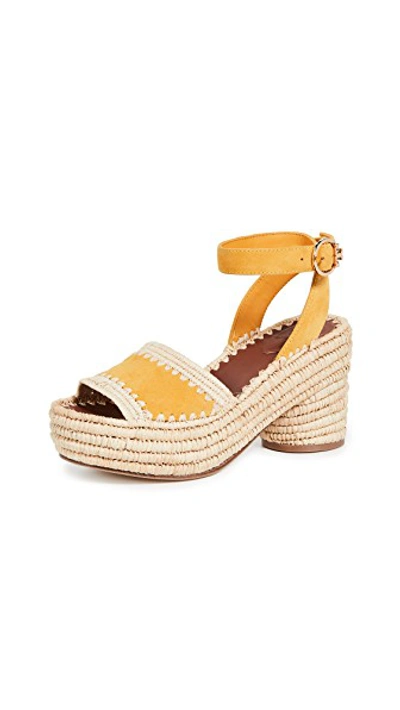 Tory Burch Size 8.5 Arianne Platform Sandals Yellow Suede Block Very well made.