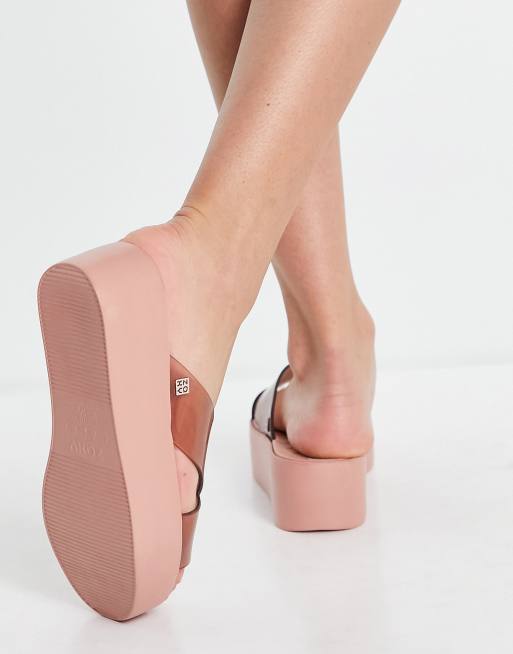 Zaxy wonder tam cross strap flatform sandals in champagne Very well made.