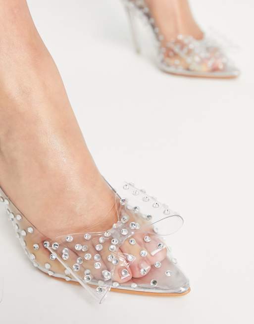 Public Desire Fake Love heeled shoes with bow in clear and silver Very well made.