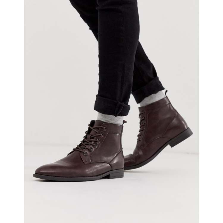 ASOS DESIGN lace up boots in brown faux leather BROWN ASOS Very well made.