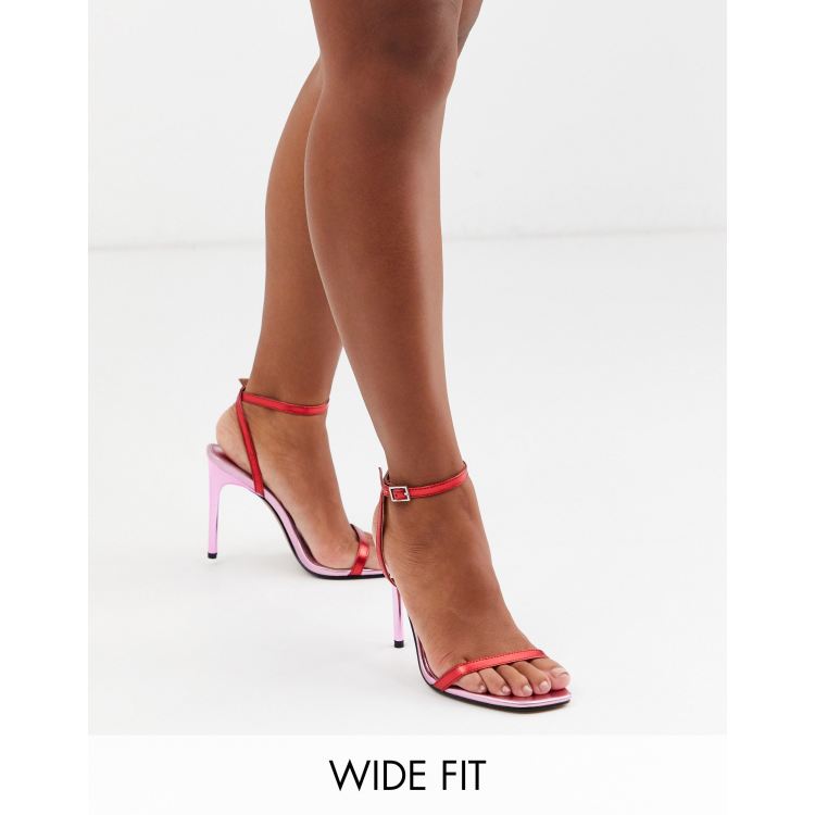 ASOS DESIGN Wide Fit Nova barely there heeled sandals in red and pink Very well made.