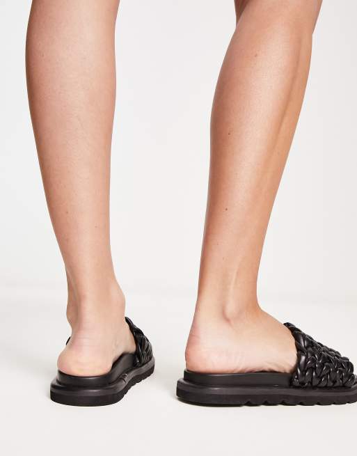 ASOS DESIGN Fiction woven vamp flat sandal in black Very well made.