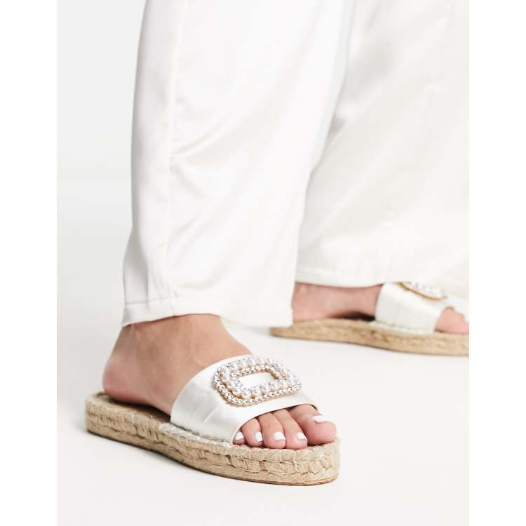 ASOS DESIGN Fusion faux pearls flat sandals in white WHITE Very well made.
