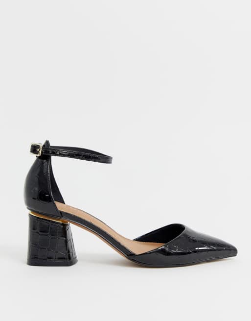ASOS DESIGN Wide Fit Stardust pointed mid heels in black croc Very well made.