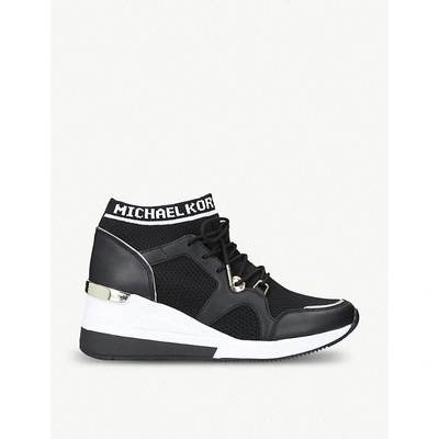 Michael Michael Kors Hilda Leather Wedge Heel Trainers In Black Very well made.